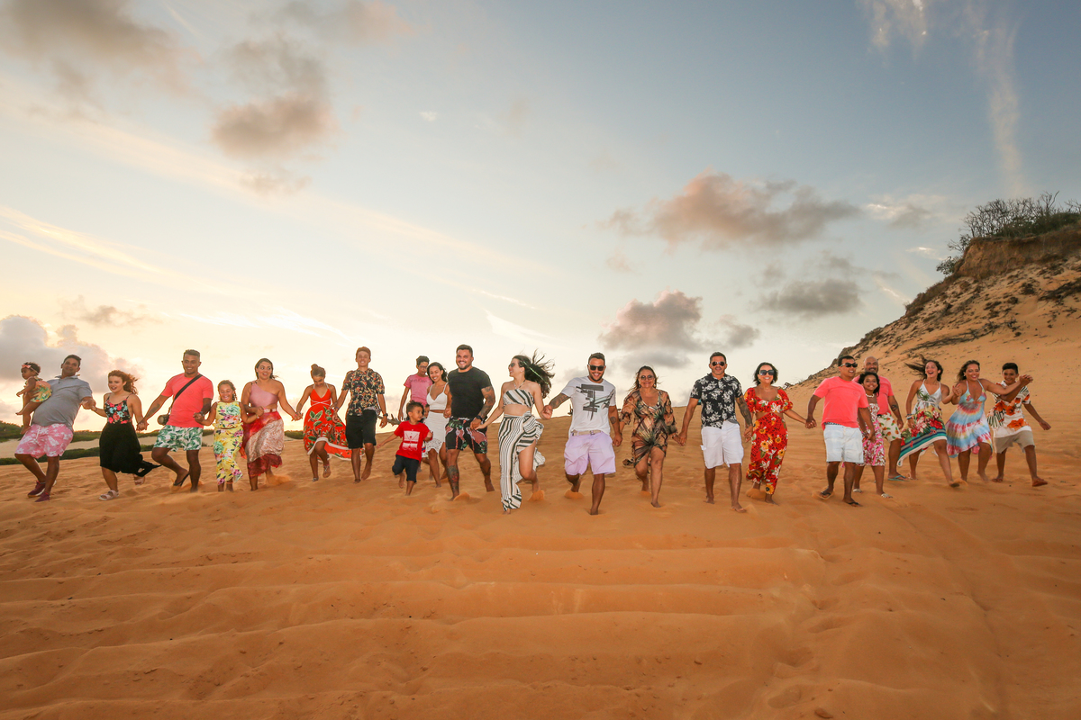 Patrícia buscava em Pipa um ensaio descontraído em família. E não foi qualquer família, ao todo foram 25 pessoas muito animadas e que toparam todas as nossas ideias. O resultado não poderia ter sido mais espontâneo e inesquecível.